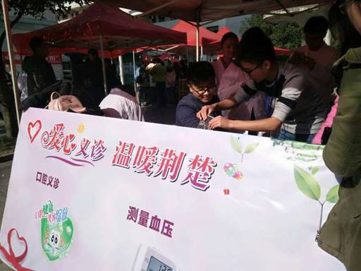 医学院青年志愿者协会“爱心义诊”活动,他们发挥自己的专业知识,为同学们进行简单的口腔检查和血压测量,并热情的向同学们宣传健康知识。