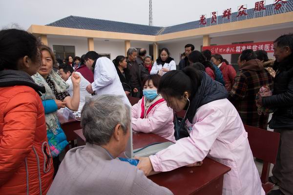 1月8日,校医院组织全体医护人员及部分医学院临床教师一行13人赴QY千亿球友会精准扶贫对象——市沙洋县官垱镇罗祠村开展精准扶贫送医送药义诊活动。
