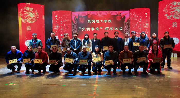 晚会中间,校领导向获得2015年“文明家庭”的教职工授予“文明家庭”匾牌。
