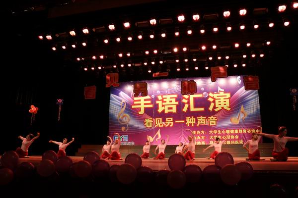 掌心相对、指尖弯曲……4月25日晚,由大学生心理健康教育咨询中心主办、大学生心理协会协办的大型手语汇演在荆楚理工会堂举行,舞者们用手势传递千言万语,引领现场千名观众走进聋哑人的无声世界。