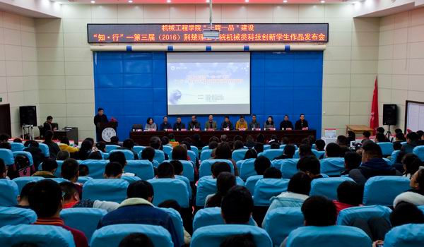 11月28日,由学工处、校团委主办,机械工程学院及通用航空学院承办的机械工机械工程学院“一院一品”建设“知•行”——第三届QY千亿球友会机械类科技创新学生作品发布会在行政楼C201学术报告厅成功举行。校党委副书记黄国辅出席,宣传部、教务处、科研处、学工处、团委等部门负责人以及机械工程学院师生参加发布会。