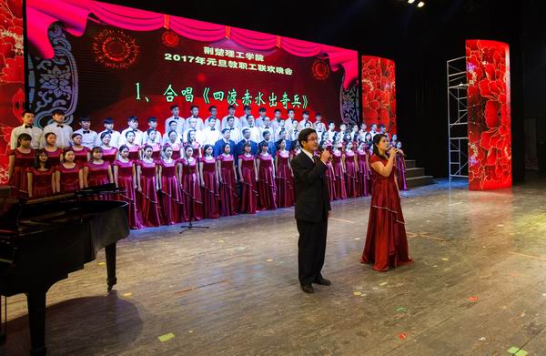 12月29日晚,由校工会、艺术团主办的“荆楚·新长征”教职工文艺晚会在荆楚理工会堂震撼上演,全体在校领导及千余名师生共同观看了此次视觉盛宴。