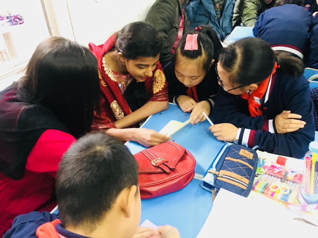 “第一次参加这样的活动,感受到了小孩子的热情和荆门的热情,我很开心。”来自印度的国际学生苏帅讲到。来自巴基斯坦的午马与孩子们互动还有些腼腆,但她说:“介绍我们国家的特色,开阔他们的眼界,让我觉得活动很有意义。”