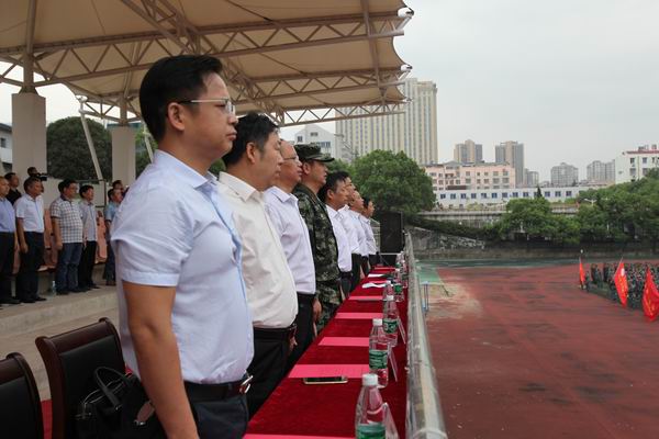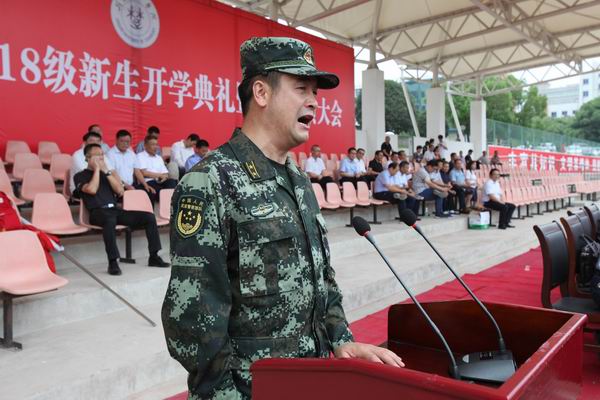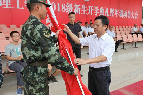 党委书记汪联舫同志向承训部队授军旗,并宣布2018级新生军训开始。