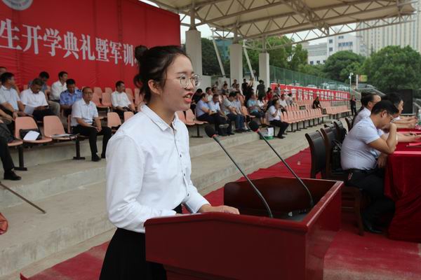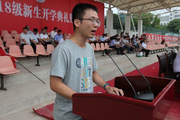 新生代表、师范学院2018级学前教育专业梁硕同学发言