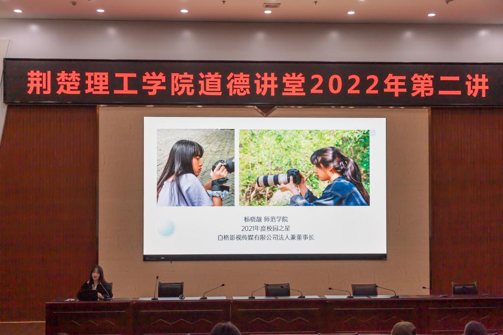 杨晓靓同学以“坚守初心 脚踏实地”为题,分享了她求知若渴、奋发图强的创业历程,她激励同学们要把握青春,努力拼搏,让青春在奋斗中绽放光彩。